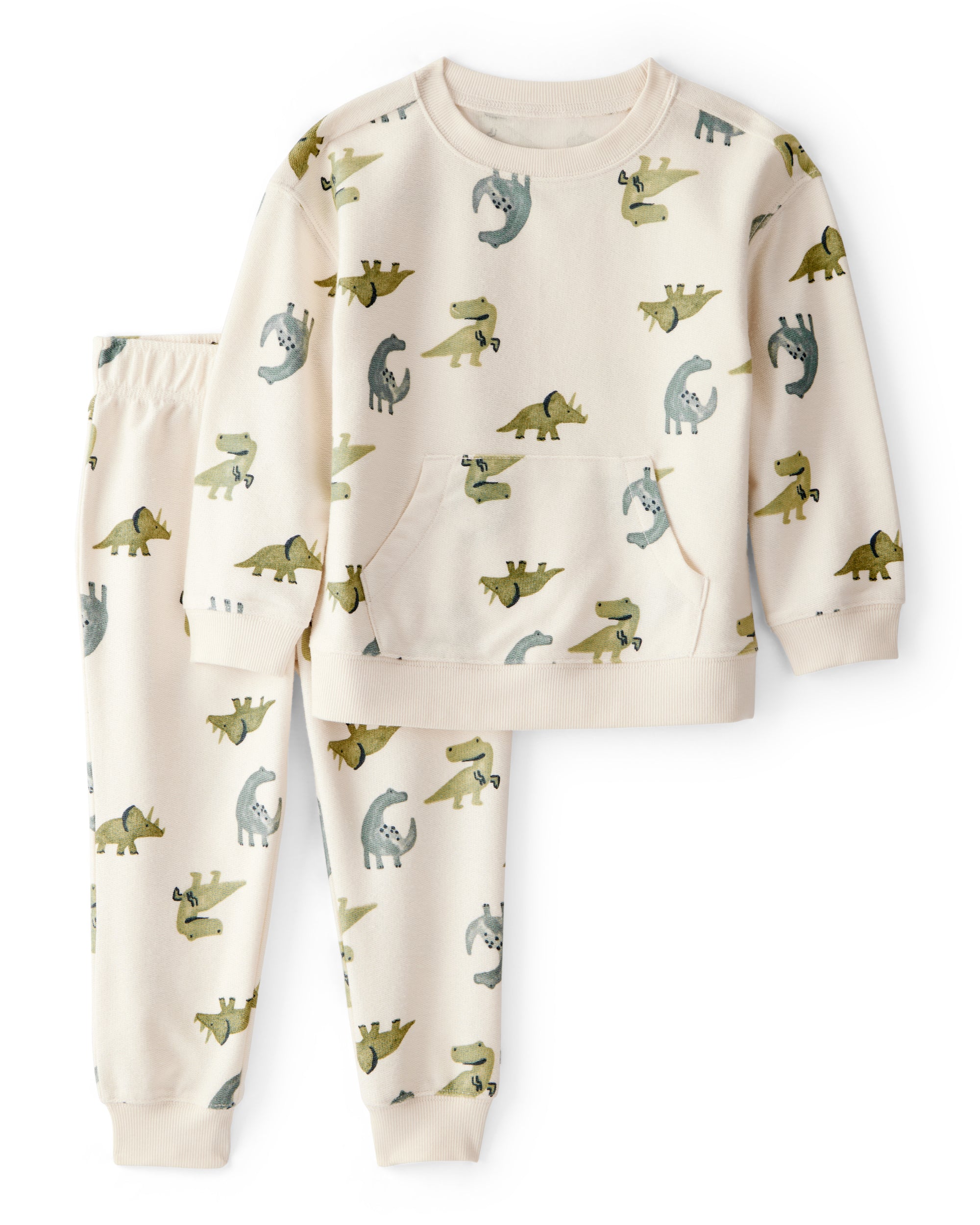 Kada se udobnost susretne sa kul izgledom, dobijate ovaj dvodijelni set koji je spreman za sve. Sa dinosaurima na sebi, ovaj duks širokog kroja i donji deo napravljeni su užurbani program mališana. Mekan, sa dovoljno streča, posjeduje udobnost koja je potrebna i stil koji vam se zapravo dopada. Bonus: veliki džep je savršen sa skladištenje malih dragocjenosti (ili grickalica).